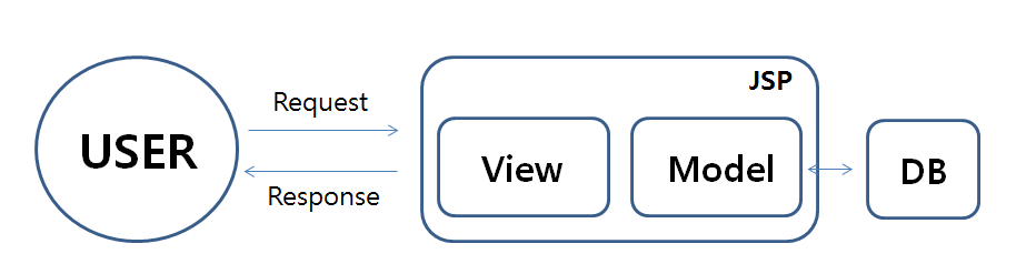 - View와 로직 처리를 위한 자바 코드가 같이 존재하여 JSP 페이지가 복잡해진다. - 유지보수가 어렵다. |