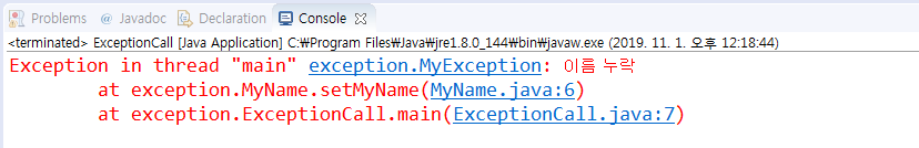 try catch문을 통한 예외처리말고 Excpetion 클래스 상속으로 나만의 예외처리 코드 예시