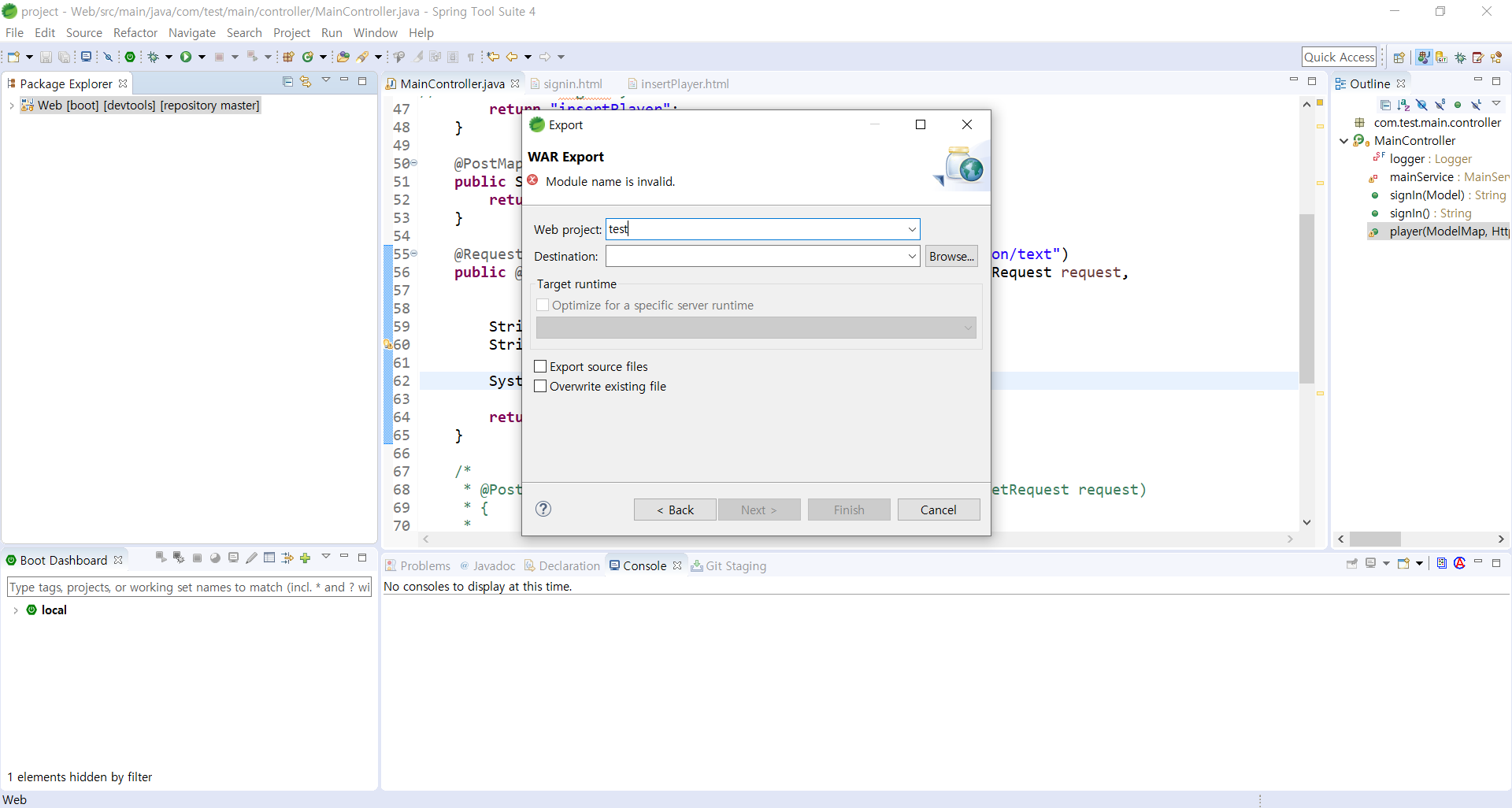 배포를 하려고 WAR로 export 하려고 하니 Module name is invalid 에러가 뜬다.