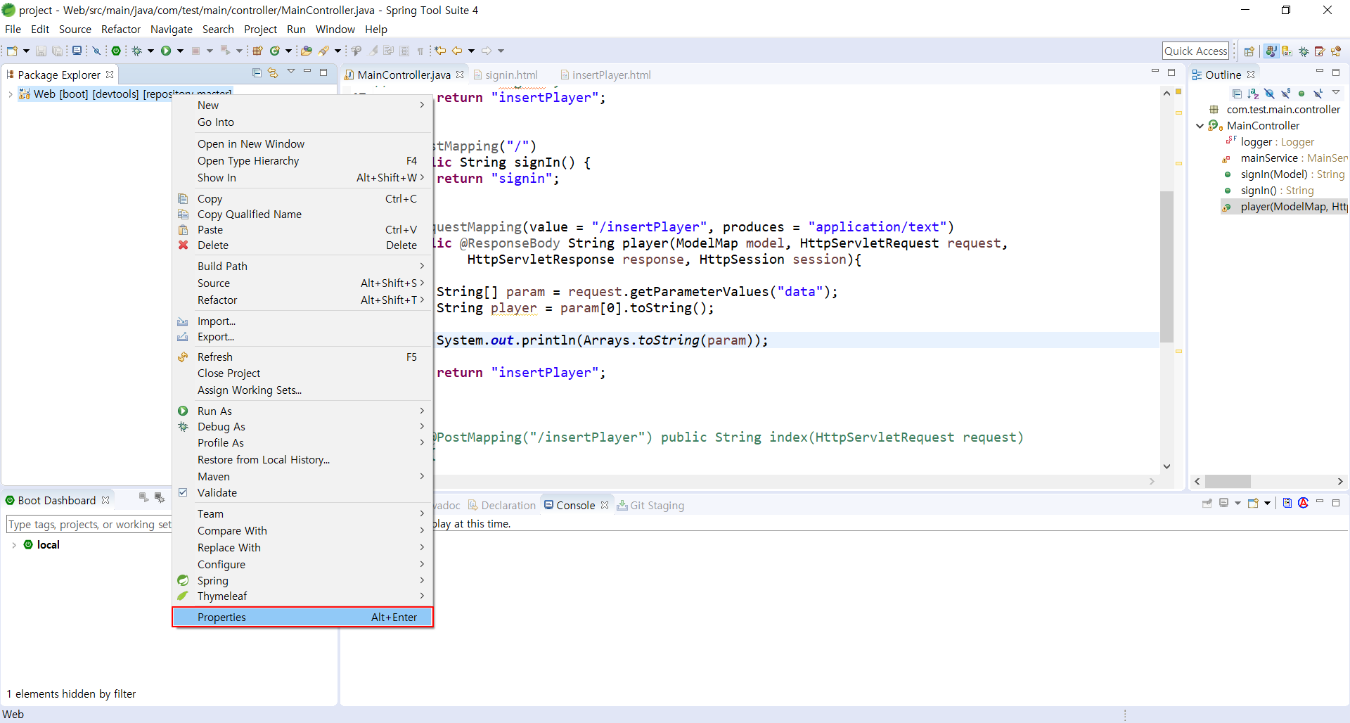 1. 프로젝트 - [마우스 오른쪽 버튼 클릭] - [Properties]