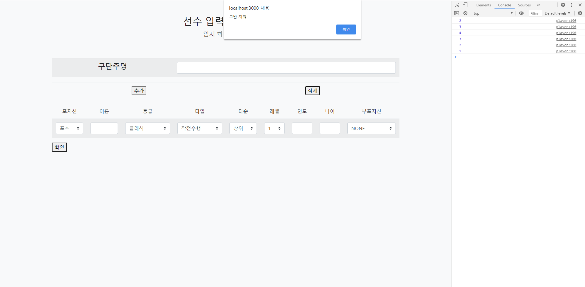 버튼 클릭 시 동적으로 table row (tr) 생성 및 제거