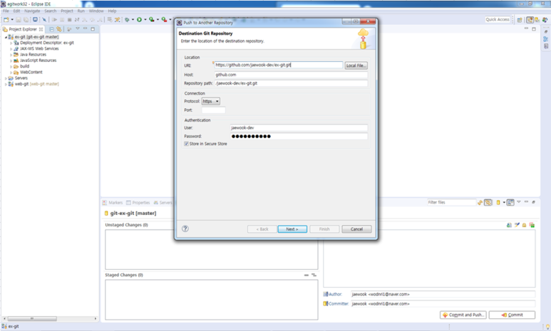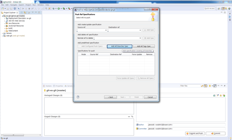 웹 상의 원격 저장소로 변경된 파일을 업로드하는 것을 푸시(Push)라고 한다