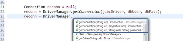 - DB에 연결하는 기능이 똑같고 하나의 클래스에서 메서드명이 일치하는데 매개변수 개수나 Data type이 다른 것이 바로 메서드 오버로딩이다