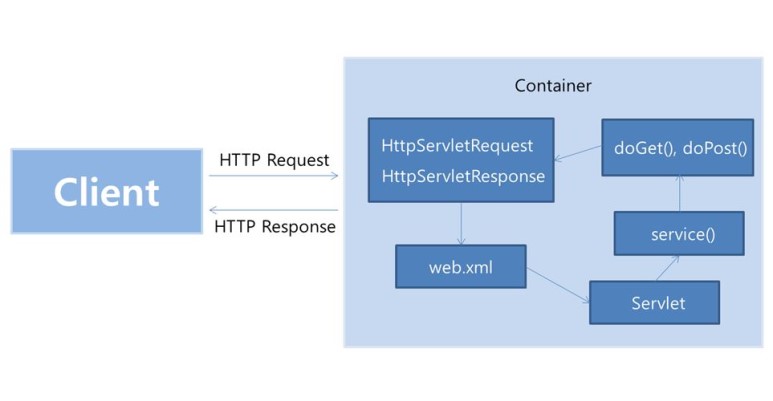 1. 사용자가 URL을 요청하면 HTTP Request를 Servlet Container에 보낸다